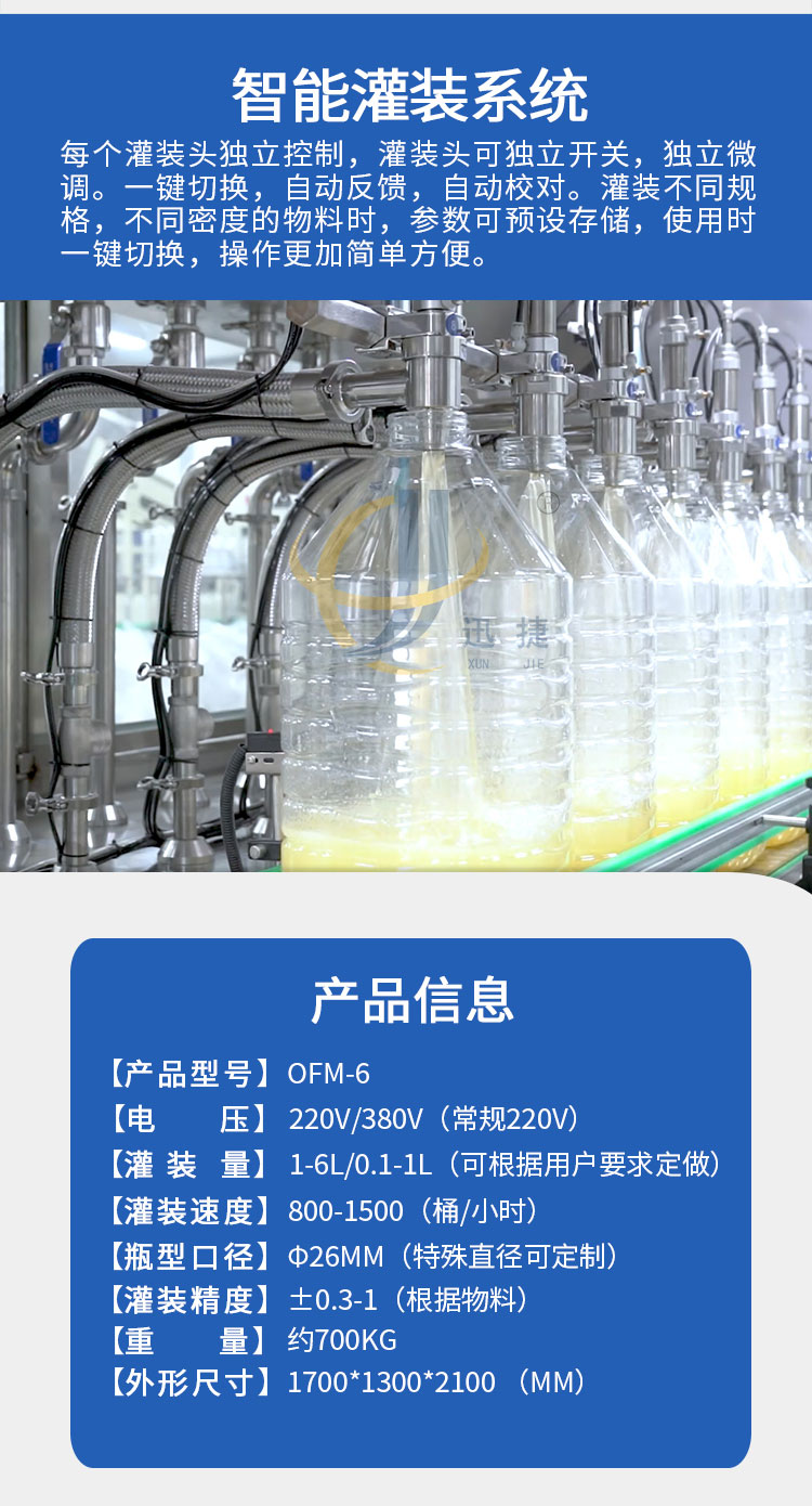 流量計食用油灌裝機(jī)適用于亞麻籽油、菜籽油、大豆油、芝麻油、橄欖油、花生油、玉米油、山茶油等食用油灌裝。