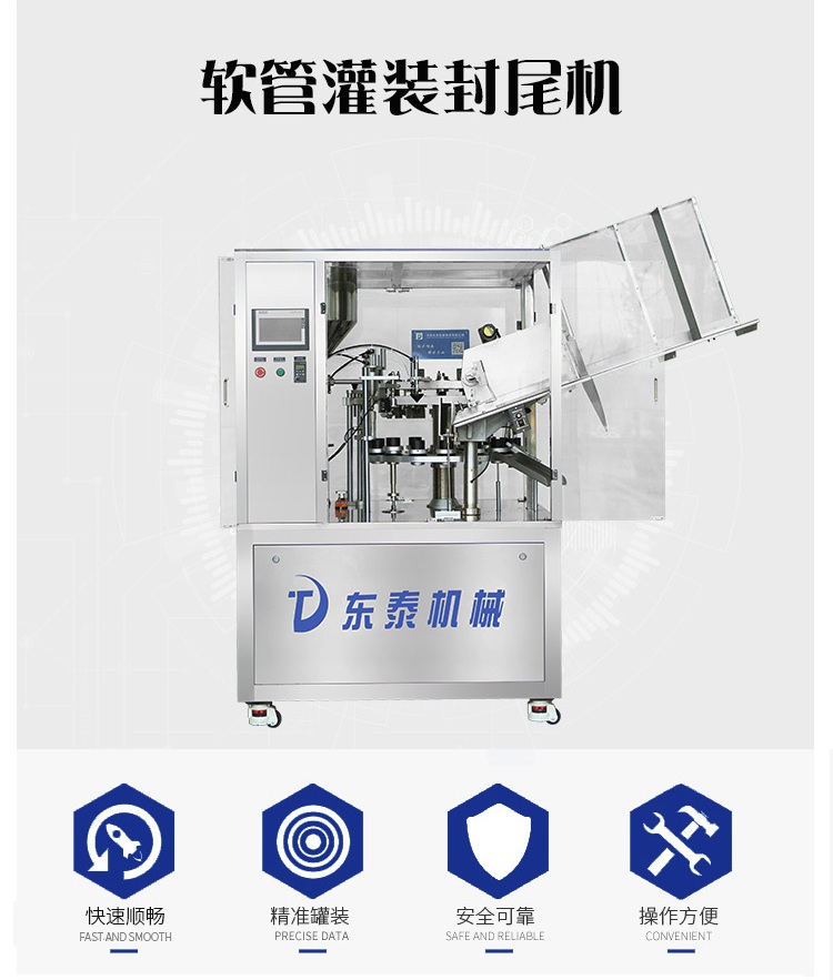 軟管灌裝封尾機適用于醫(yī)藥、食品、化妝品、日用化工用品等行業(yè)的塑管、鋁塑復合管灌裝封尾。軟管灌裝封尾機可將各種糊狀