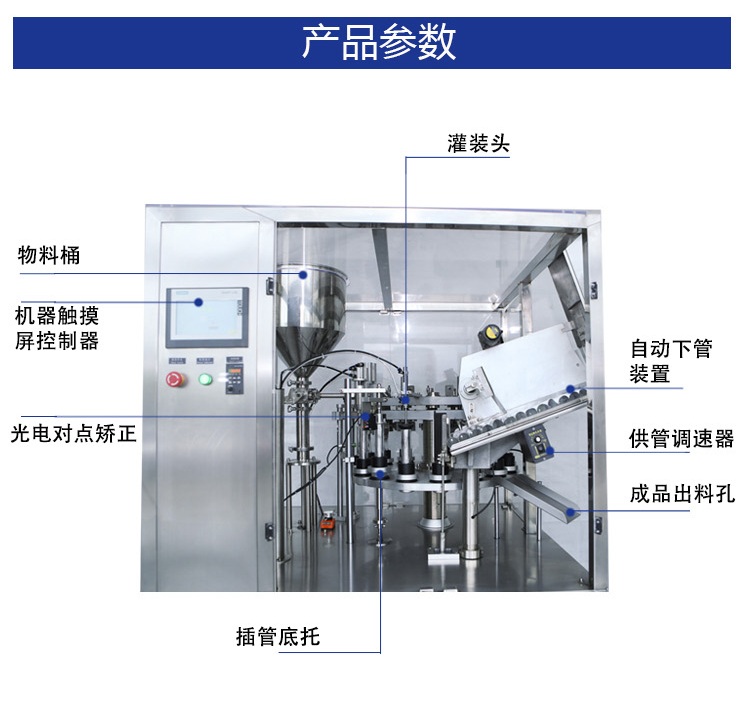順利準確地注入軟管中,并完成管內(nèi)熱風加熱、封尾和打批號、生產(chǎn)日期等。
